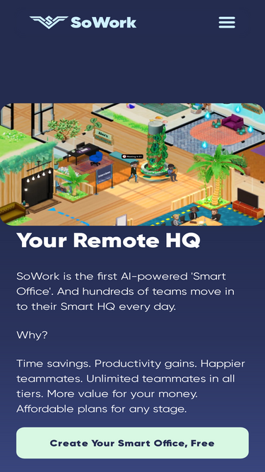 92%SoWork is your Smart Virtual Workspace. It gives your remote team efficiency, presence, spontaneity, and connection.