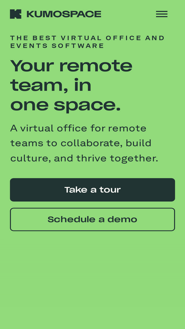 100%Kumospace is the leading virtual office platform for remote teams to communciate, collaborate, and meet online.