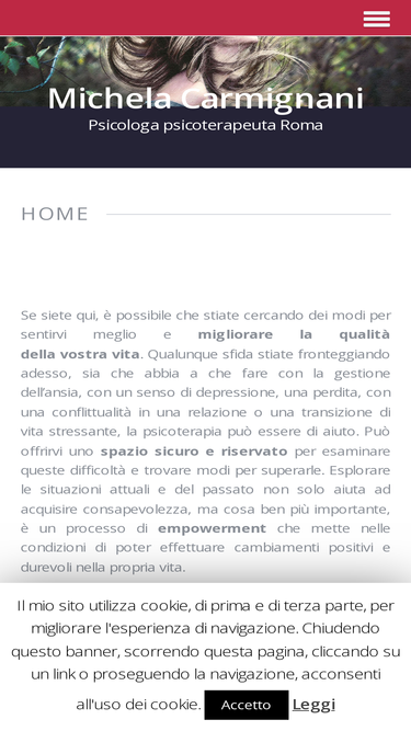 100%Michela Carmignani è una Psicologa e Psicoterapeuta che riceve in Roma, zona Eur Torrino, Piazzale degli Eroi e Viale delle Medaglie d'Oro