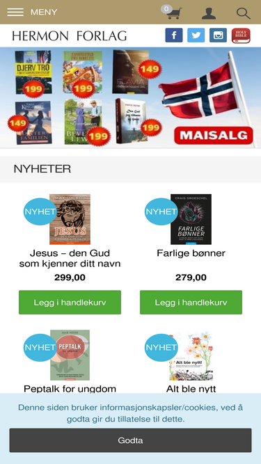 84%Velkommen til Hermon Forlag! Bibel og kristne bøker for alle. Vi har romaner, biografier, andaktsbøker, bibler, studiebibler og gaveartikler.