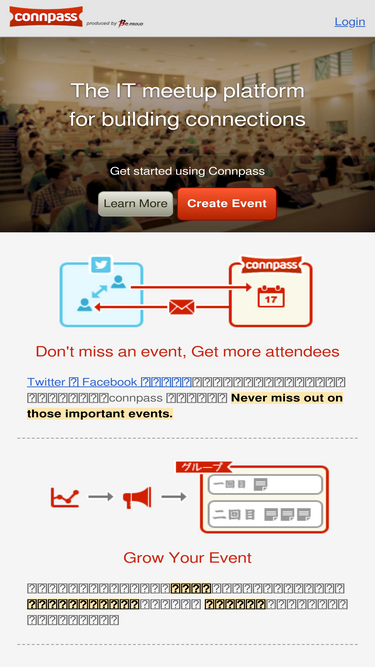 Connpass is a web service where you can easily create, and promote your events. Organizing your community or group, search, and paid events are supported.