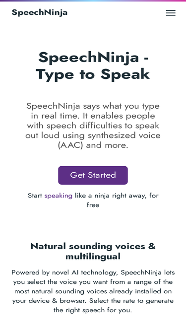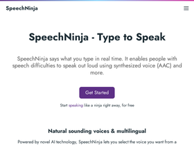 88%SpeechNinja says what you type in real time. It enables people with speech difficulties to speak out loud using synthesized voice (AAC) and more.