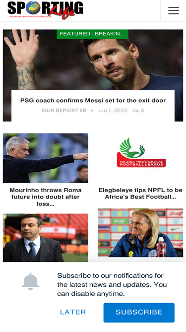 92%Stay updated with Sporting Life Nigeria for the latest sports news, live scores, transfer updates, and in-depth analysis on football, boxing