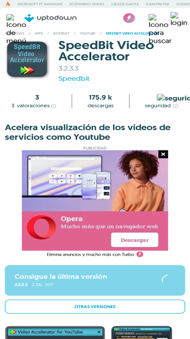 descarga gratis speedbit video accelerator para windows. acelera visualización de los vídeos de servicios como youtube. speedbit video accelerator es una...