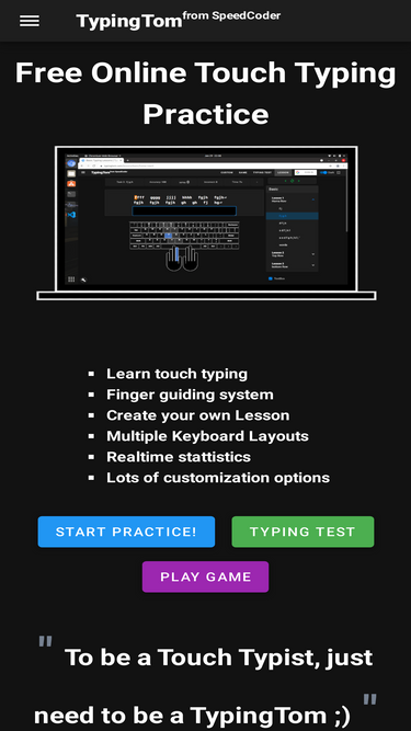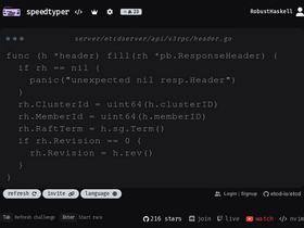 95%speedtyper.dev is a typing application for programmers. Battle against other developers by typing challenges from real open source projects as fast as possible. Practice your typing to become a faster and more accurate programmer by practicing typing actual code sequences and symbols that are hard to find on the keyboard.