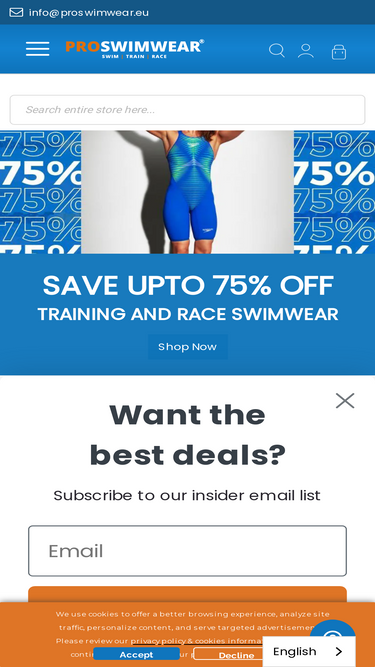 75%swim shop for swimwear and swim accessories. first choice for serious swimmers. speedo, arena, nike, tyr, maru, adidas!