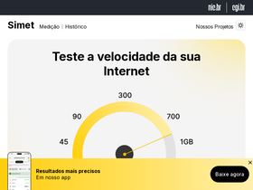 80%o simet é um medidor de velocidade internet completo que verifica, além de sua banda de download, diversas métricas de qualidade internet que afetam diretamente a navegação e utilização da rede. por ser uma tecnologia desenvolvida pelo nic.br, é o único sistema de medição brasileiro totalmente independente, garantindo confiabilidade e precisão nas medições.