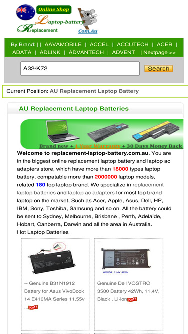 82%replacement laptop battery in australia, low price replacement laptop batteries, notebook batteries for dell, toshiba, hp compaq, sony, apple, acer, asus, ibm and so on. all the laptop ac adapters, laptop chargers in stock.