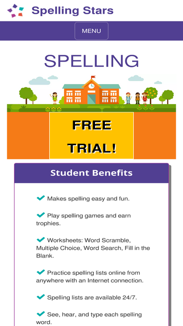 spelling stars is an online spelling program for teachers where students can take spelling tests, practice spelling, and play spelling games for the classroom.