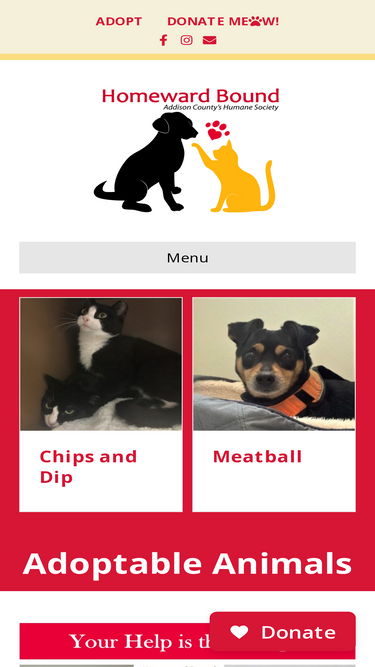 84%Contact Us MAIN CONTACT INFORMATION: Phone: 802-388-1100 Email: shelter@homewardboundanimals.org Location: 236 Boardman Street, Middlebury, VT 05753 Mail: same as above HOURS: Adoption Center: Open Tuesday-Saturday, 11:00am-3:30pm. Administrative Offices: Open Monday-Friday, 8:30am-4:30pm.…