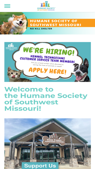 79%Humane Society of Southwest Missouri. We are a non-profit, no-kill animal shelter in Springfield, MO. We rescue dogs and cats and find loving adoptive homes for them.