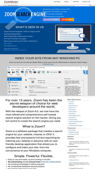 100%zoom search website search engine script. includes doc, pdf support. high capacity, installs on any site