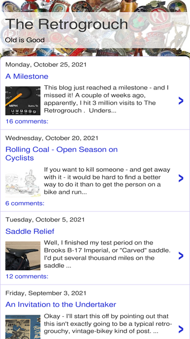 77%A blog about bicycles and bicycle riding. Emphasis on vintage and classic bikes, with lots about old vs. new technology.