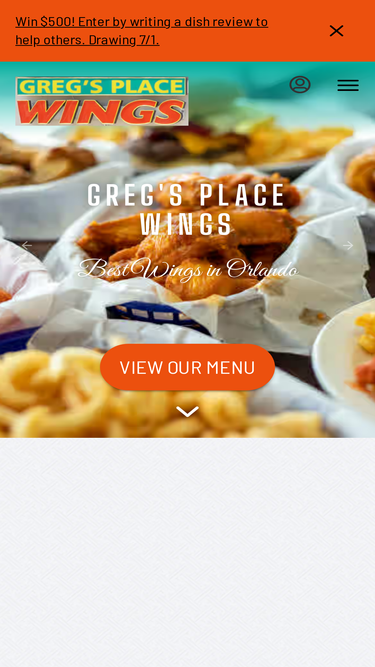 greg's place is a family owned and operated restaurant with more than 25 flavors of wings, fresh cut steaks, and hand made burgers, all cooked on an open flame grill. you're sure to find something for everyone. 407-277-7789