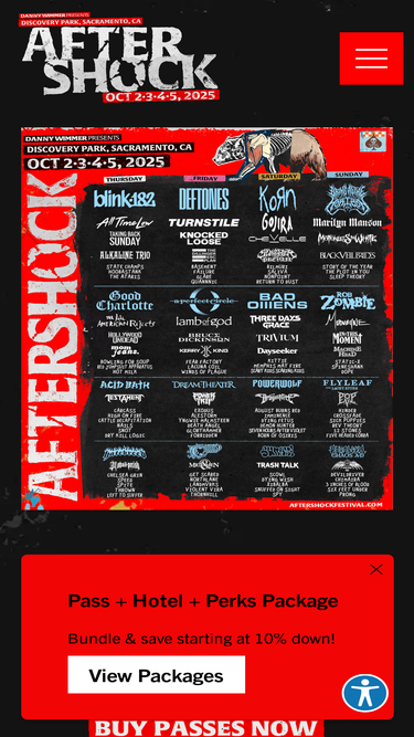 74%aftershock is returning to discovery park in sacramento, california, oct 6th-9th ft. my chemical romance, slipknot, kiss, muse, rob zombie & more!
