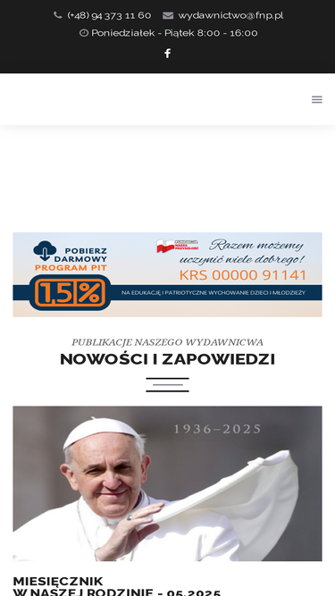 91%Wydawnictwo oferuje książki religijne, dla dzieci, modlitewniki zawierające codzienne modlitwy, nabożeństwa, nowenny, litanie, drogi krzyżowe. Także kurs łaciny.