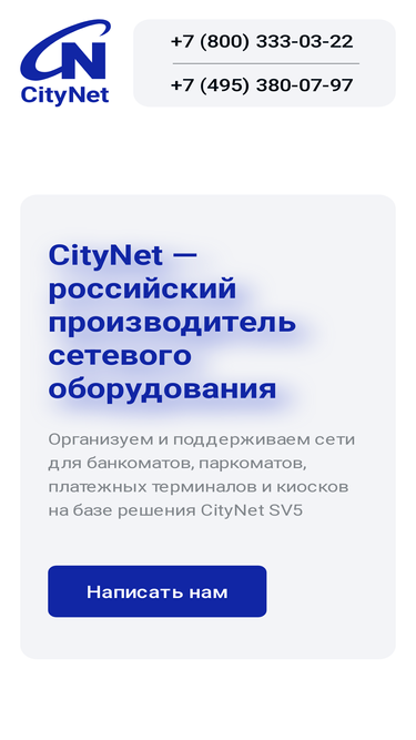 100%Организуем и поддерживаем сети для банкоматов, паркоматов, платежных терминалов и киосков на базе решения CityNet SV5