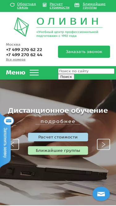100%независимый центр профессиональной подготовки ночу до учебный центр оливин – аккредитованное аттестационно-методическое учреждение широкого профиля. в центре осуществляется подготовка, переподготовка и повышение квалификации специалистов рабочих профессий. стоимость обучения вы можете уточнить на сайте или по телефону +7 (499) 270-62-22.