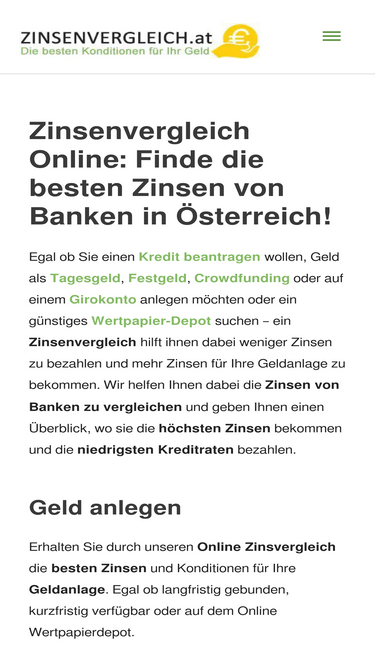 76%Vergleichen Sie Zinsen von Banken im Internet ✓ Online Zinsenvergleich für Bankzinsen ✓ Höchste Zinsen für Geldanlage ✓ Günstige Kredite ✓ Gratis Depot