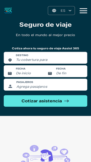 80%Make your travel insurance quote with Assist 365. Get comprehensive medical coverage, 24/7 assistance, and the best price to travel with peace of mind.