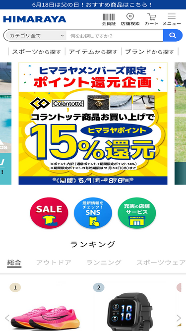 ヒマラヤ(himaraya)オンライン 公式通販サイトのページ | ヒマラヤではスキー、スノーボード、サッカー、野球、ゴルフ、テニス、フィットネスなどのスポーツ用品やアウトドア、ジュニア・キッズ用品も多数ご用意 | スポーツの通販 ヒマラヤオンラインストア【公式】