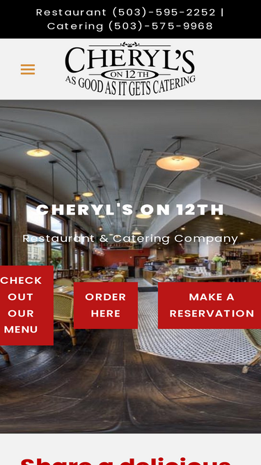 96%Located in the heart of downtown Portland, Cheryl’s on 12th is a bright and welcoming New American café created by Cheryl and Ed Casey. With its floor-to-ceiling windows, vibrant atmosphe...