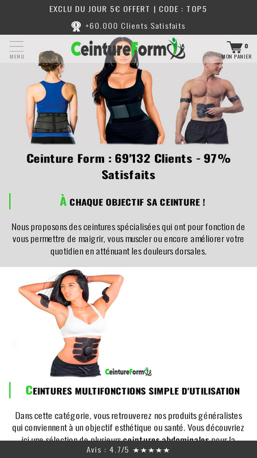 92%La ceinture Abs 5 est la ceinture abdominale la plus simple & classique, avec sa télécommande intégrée et son fonctionnement à piles. Des études ont prouvé que cette ceinture raffermit et tonifie vos abdominaux à partir de 6 semaines d'utilisation. Il est recommandé d'utiliser la ceinture 20 à 30 minutes par jour, 5 jours par semaine.