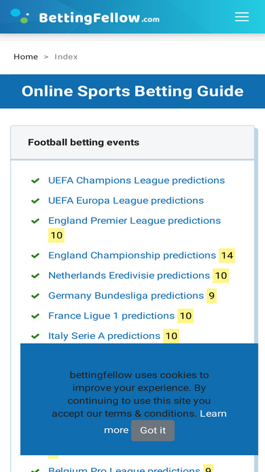 89%here you will find a good sports prediction guide with free predictions, odds, conversions and statistics for sports games. we show many kinds of picks like under/over, both teams to score and much more.