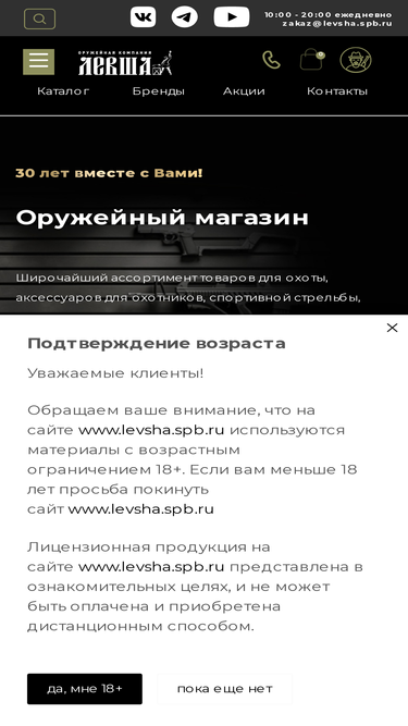 Левша - оружейный магазин в Санкт-Петербурге. Широкий выбор охотничьего оружия, припасов, амуниции