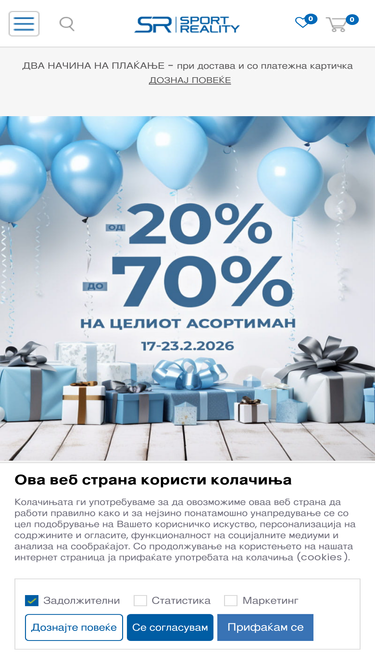 82%Otkrijte ja najnovata kolekcija na sportska obleka, obuvki i oprema za mazi, zeni i deca od vrvni brendovi kako Adidas, Reebok, Nike, Puma i dr. Uzivajte vo brza isporaka, najdobri ceni i onlajn poddrska. Posetete ne i pronadete se sto vi e protrebno za aktiven zivot.