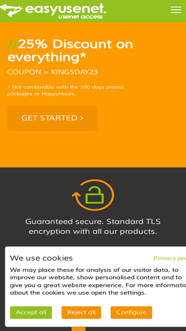 92%Confidentialité & sécurité chez EasyUsenet : ✨ Qualité, 💶 meilleurs prix & 🚀 vitesse Usenet depuis plus de 20 ans !