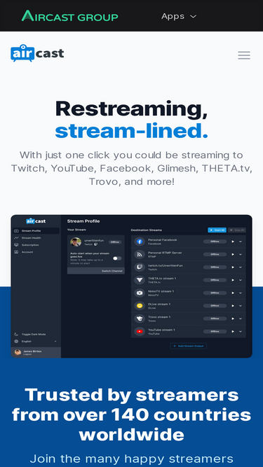76%Restream without changing your setup. Stream to unlimited outputs with no quality restrictions for just £6 per month.