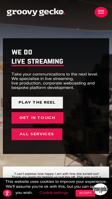 88%Expert live stream production services delivering end-to-end live, virtual and hybrid events with secure platforms and flawless delivery. Get in touch →