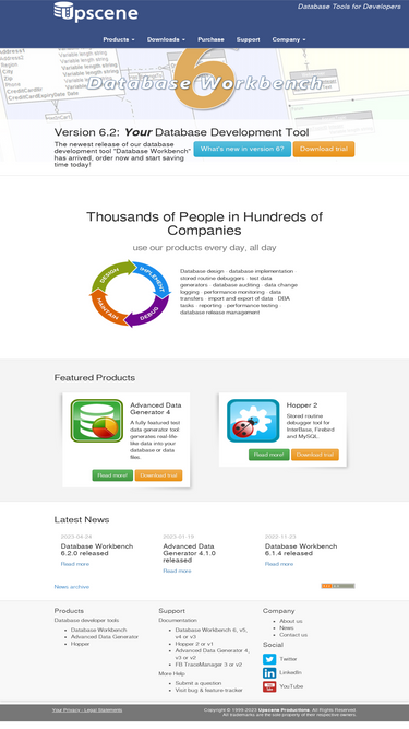 92%upscene: database tools for developers. database tools for oracle, postgresql, interbase, firebird, sql server, mysql, nexusdb, sql anywhere and advantage database. auditing tools for databases. test data generator tools for databases.