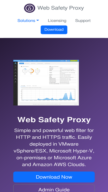 100%simple and powerful web filter and secure web gateway for your network. decrypt, inspect and block http/https traffic flowing into your organization. authenticate proxy users and build traffic reports.