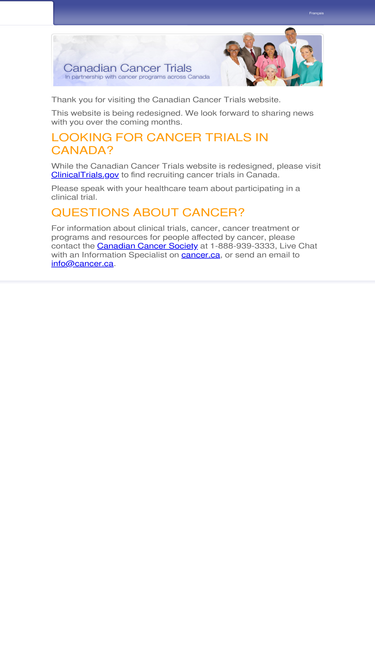 88%canadian cancer trials is a national, bilingual, searchable database of cancer trials in canada. search for a clinical trial by cancer type, province, drug, keyword, or phrase. share, save or print the trial details and review them with your doctor or healthcare team.