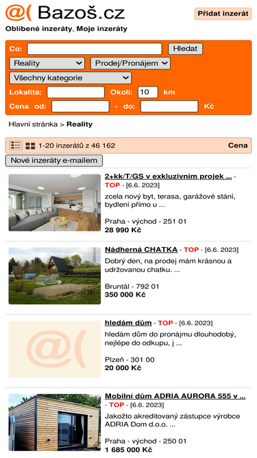 76%Nabídka 960 realitních kanceláří na jednom místě. Denně tisíce novinek. Byty k prodeji či pronájmu, domy, pozemky, chaty, chalupy i kanceláře. Soukromá inzerce zdarma.