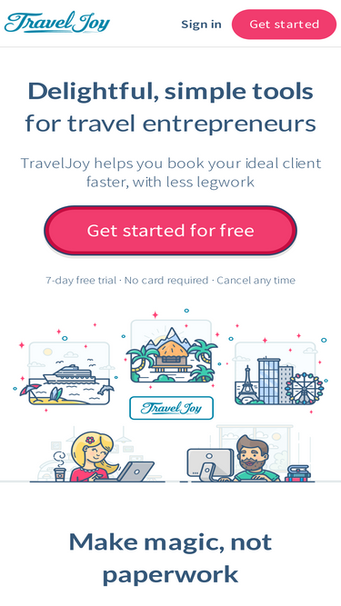 76%Discover TravelJoy, the all-in-one travel agency CRM. Manage clients, itineraries, payments, and communications with ease.