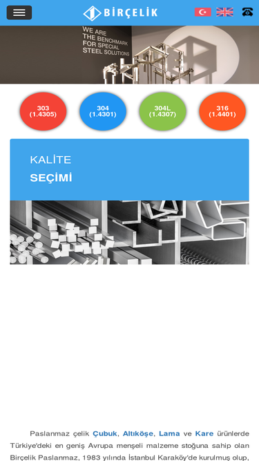 83%birinci sınıf paslanmaz çelik çubuk, altıköşe, lama ve kare malzemeler. tamamı avrupa menşeli ve sertifikalı 20 farklı kalitede 850 farklı ürün