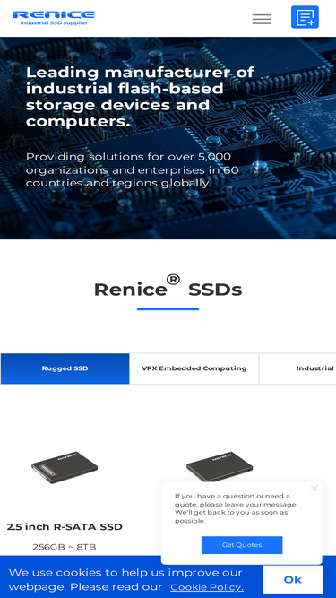 renice is a leading ssd supplier for industrial automation, aerospace, maritime, automotive, transportation and enterprise fields. we provide full range of services on your ssd solutions, e.g. industrial ssd for automotive and rail transit applications, cf card for power and energy applications, miltiary ssd, one-key physical destruction ssd, rugged ssd for aerospace and aviation applications, and nand flash test service.