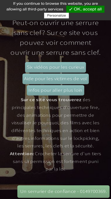 peut-on ouvrir une serrure sans clef? sur ce site vous pouvez voir comment ouvrir une serrure sans clef. parmi les techniques d'ouverture nous avons : les crochets, la bump key, le pick gun, le by-pass, le crochet hobbs, l'impression, le tâtage, etc.