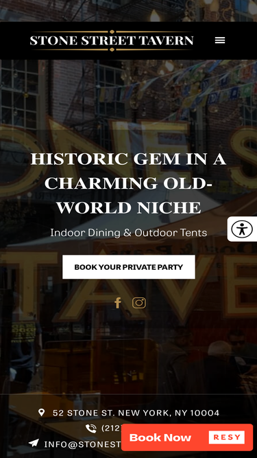 69%Historic pub on Stone Street serving craft beers, legendary Hangover Burger & comfort food. Indoor dining & outdoor seating. Reservations: (212) 785-5658