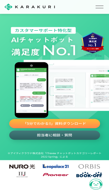 90%KARAKURI(カラクリ)のFAQツールは、FAQとチャットボットを一元管理。フォーム連携で水際での問い合わせを抑止し、自己解決率を向上。運用負担を軽減し、カスタマーサポートを効率化。