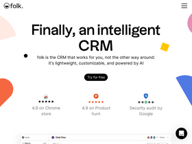 91%folk is an AI-powered CRM trusted by over 4,000 companies worldwide. Designed for teams of 5 to 50 people working in sales, account management, partnerships, venture capital, and services. It connects with WhatsApp, LinkedIn, and more than 6,000 other tools — helping teams enrich contacts, manage pipelines, and use AI to know exactly when and how to follow up.