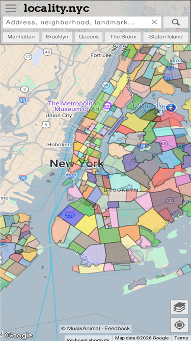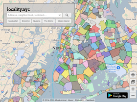 75%a comprehensive interactive map of all new york city neighborhoods. search by address, use geolocation, and learn about the history of neighborhoods.