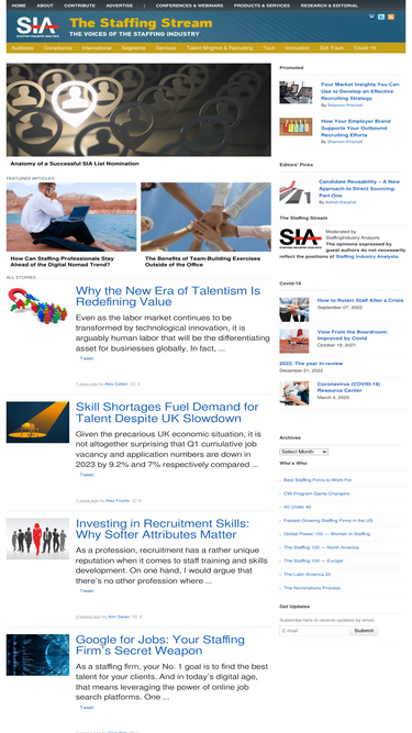 79%Trusted. Independent. Objective. Staffing Industry Analysts (SIA) is the global research and advisory firm focused on staffing and workforce solutions. SIA delivers insights to inform, connect and elevate the workforce solutions ecosystem in the constantly evolving and complex world of work. Access real-time data, market intelligence, extensive research, industry expertise and leading analysis through SIA’s top-tier member resources, news and editorial, award-winning events, interactive opportunities, and more unique offerings.