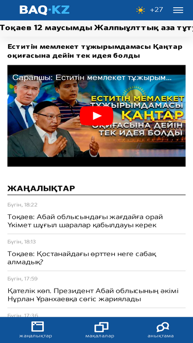 88%BAQ.KZ - басты ақпарат құралы. Қазақстан және әлем жаңалықтары. Қоғам. Саясат. Әлеумет. Білім. Мәдениет. Тұрмыс. Технология. Ұлы Даланың жеті қыры, Рухани жаңғыру, Жастар жылы, Цифрлы Қазақстан