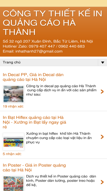 100%CÔNG TY TNHH QUẢNG CÁO 3H VIỆT NAM Để liên hệ và nhận các thông tin khuyến mại sớm nhất, xin vui lòng điền đầy đủ thông tin của bạn vào form dưới đây. Chúng tôi sẽ liên lạc lại với bạn trong thời gian sớm nhất Cơ Sở 1: Số1 Ngõ 1174 Đường Láng, Đống Đa, Hà Nội Cơ sở 2: Liền kề 6A3 C17, Bộ Công An, Nguyễn Văn Lộc, Mộ