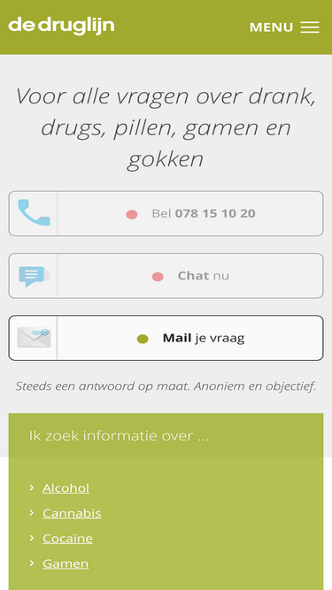 De Alcohol Infolijn is er voor iedereen. Voor vragen over jezelf, je kind, ouder, familie, vriend of kennis.