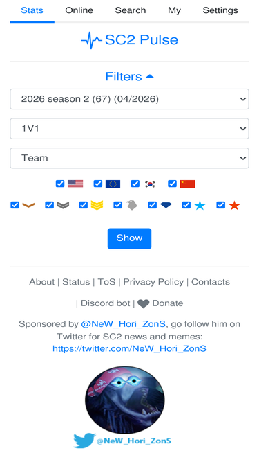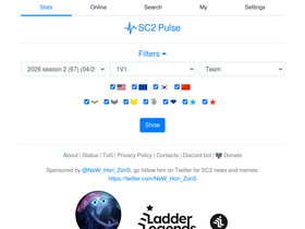 79%comprehensive ladder statistics for starcraft2. online population, mmr ranking, race/league/region distribution, tier mmr ranges, match history, pro player unmasking and earnings.